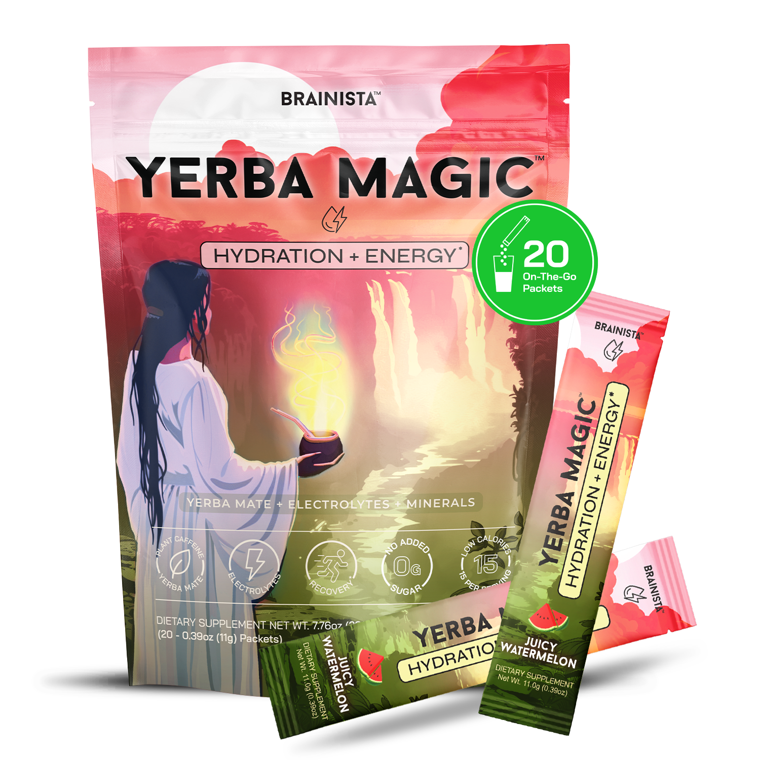 Brainista Yerba Hydration elevates your daily routine by combining plant-powered energy with advanced hydration in one convenient stick. Infused with 100mg natural caffeine from Yerba Mate, electrolytes from coconut water concentrate and Irish sea moss, plus a balanced EAA + mineral complex, it delivers clean, sustained focus and replenishment without sugar crashes.